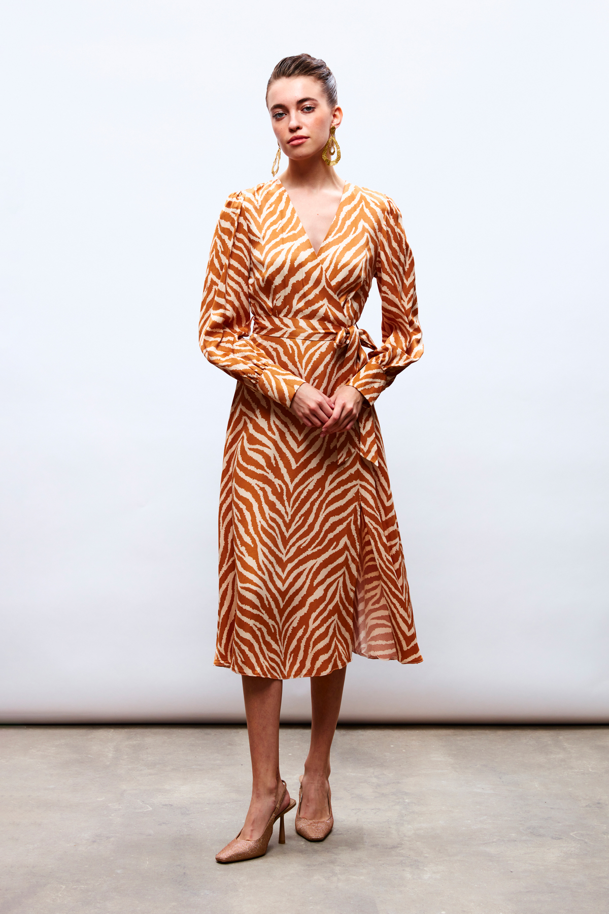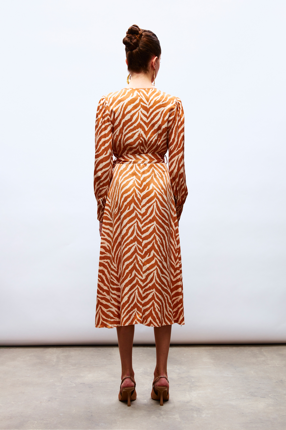 Zebra Pattern Belted Satin Dress – CAMEL